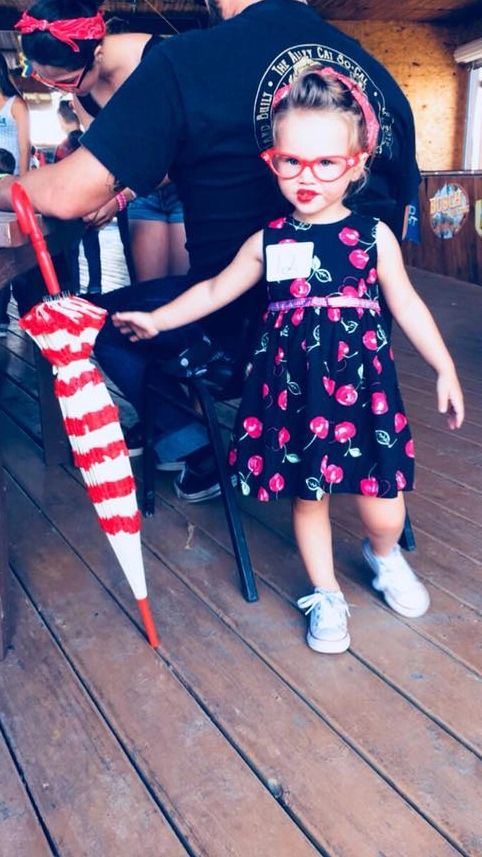 She may only be 36 inches, but she’s not hiding in anyone’s shadow. This little spit fire can be found roaming around the Des Moines and surrounding areas in style in her rusty wagons at car shows, swap meets, and races. She’s been doing pinup for half her life (2 years), and getting greasy in the garage even longer!